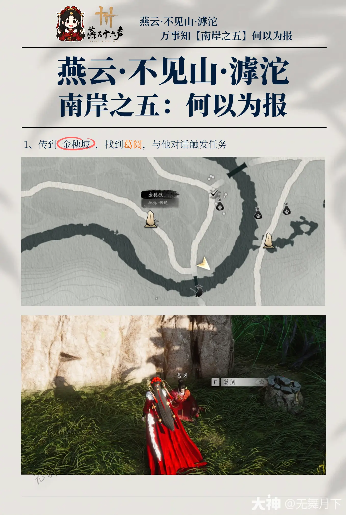 传到金穗坡,找到葛阅,与他对话触发任务